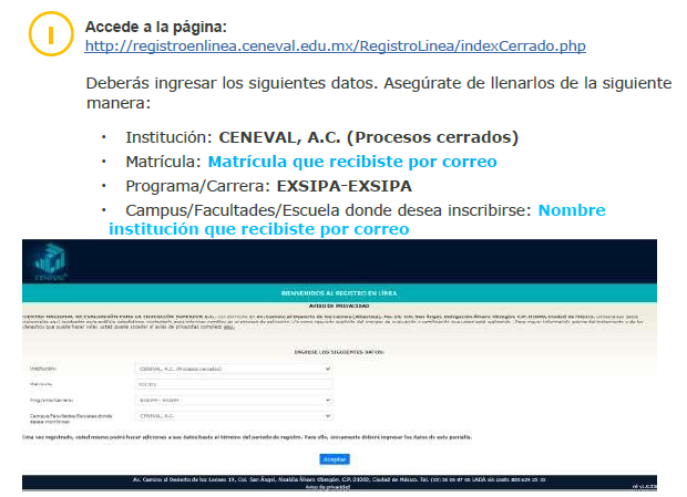 Realice los siguientes pasos para registrarse al examen y obtener su pase de ingreso: